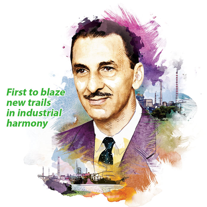 JRD Tata gave shape to the idea that employee welfare is a prerequisite of good management. In 1943 he set-up, in Jamshedpur, a Personnel Department for the first time. This was followed by a system of joint consultation which has enabled Jamshedpur and us to enjoy an unprecedented measure of industrial peace and harmony.