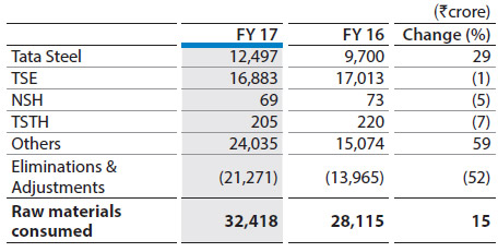 The increase at Tata Steel India is due to higher consumption at TSK and cost of imported coal. Decrease at TSE is primarily due to the exchange impact on translation, partly offset by increase in iron ore and coal costs.