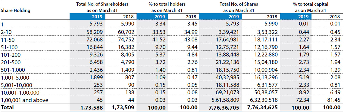 The details of complaints received and resolved during the Financial Year ended March 31, 2019 are given in Table J below. The complaints relate to non-receipt of annual report, dividend, share transfers and other investor grievances.
