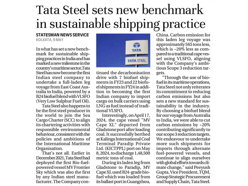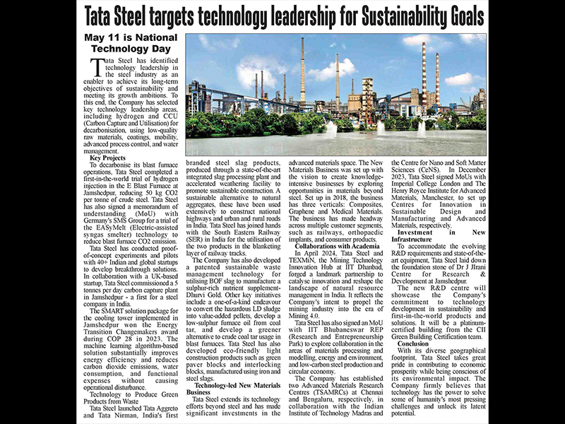 "At Tata Steel, sustainability forms the core of our business philosophy. The Company has already initiated several measures in its pursuit of net zero carbon emissions by 2045."