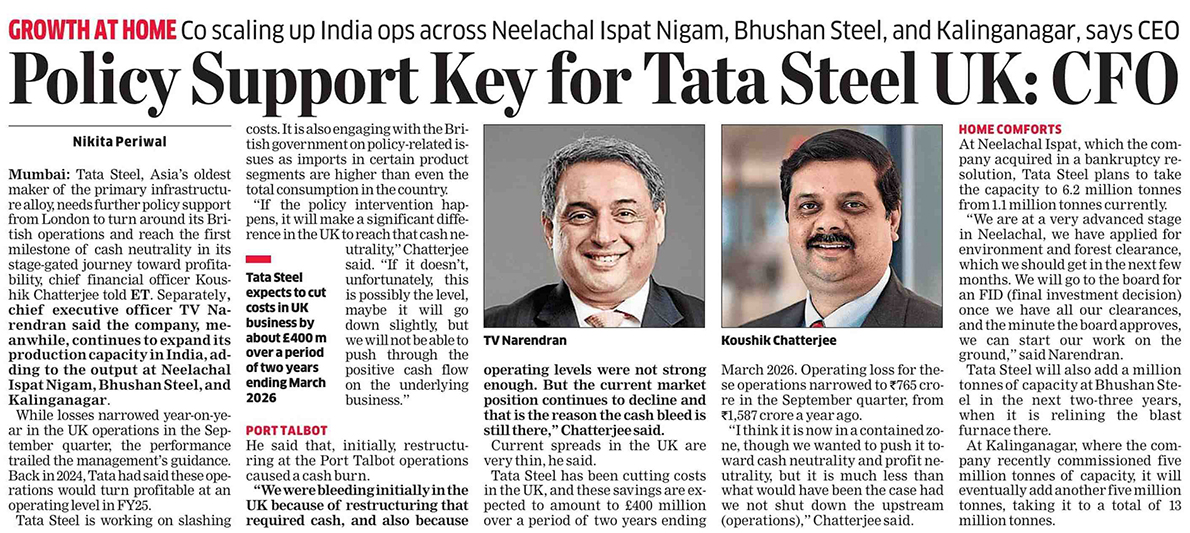Policy Support Key for Tata Steel UK: CFO