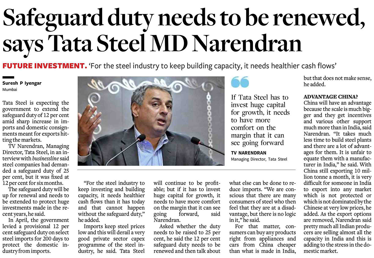 Safeguard duty needs to be renewed, says Tata Steel MD Narendran
