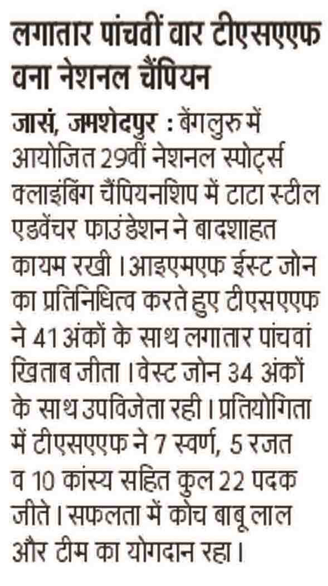 Tata Steel Adventure Foundation (TSAF) Sport Climbing Academy Clinches 5th Straight National Title
