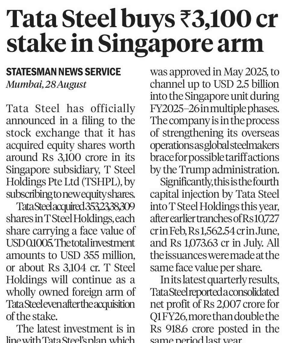 Tata Steel buys ₹3,100 cr stake in Singapore arm