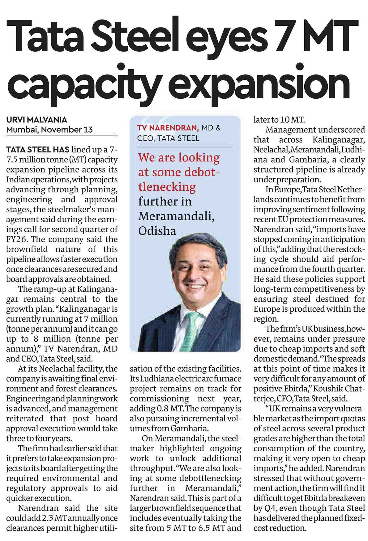 Tata Steel eyes 7 MT capacity expansion