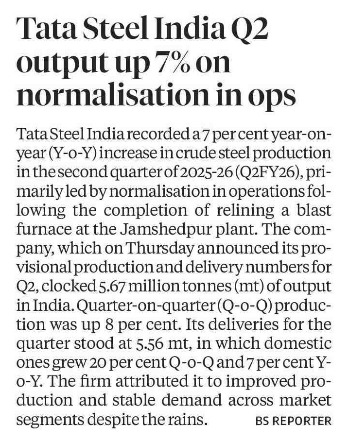 Tata Steel India Q2 output up 7% on normalisation in ops