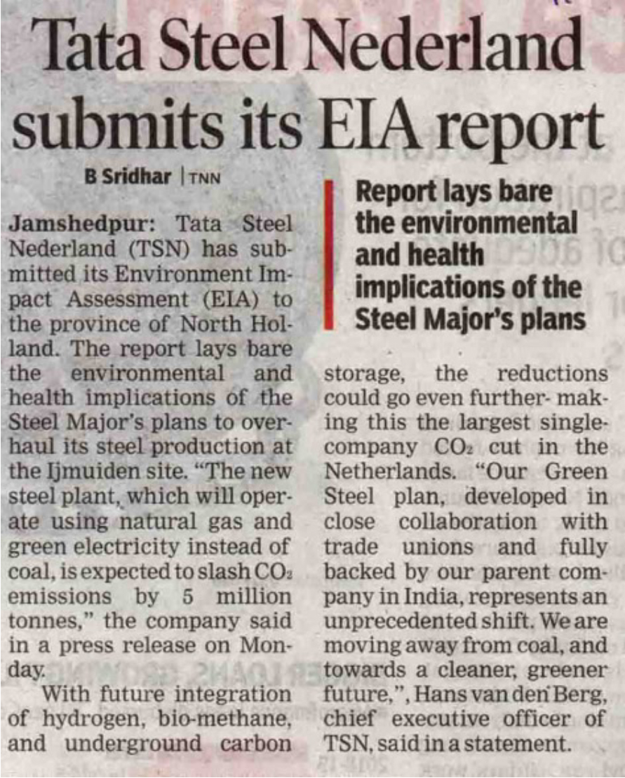 Tata Steel Nederland submits its EIA report