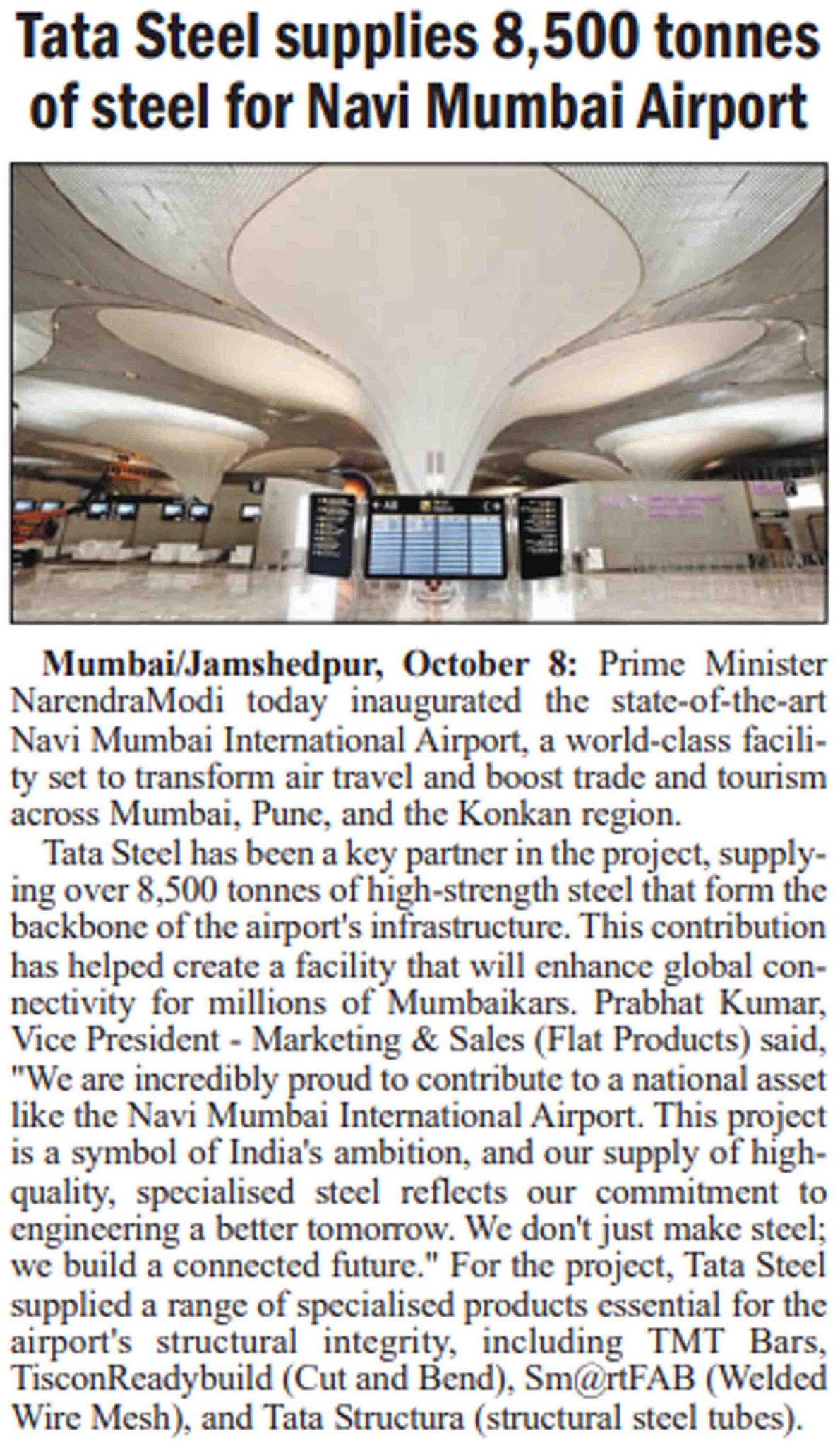 Tata Steel supplies 8,500 tonnes of steel for Navi Mumbai Airport