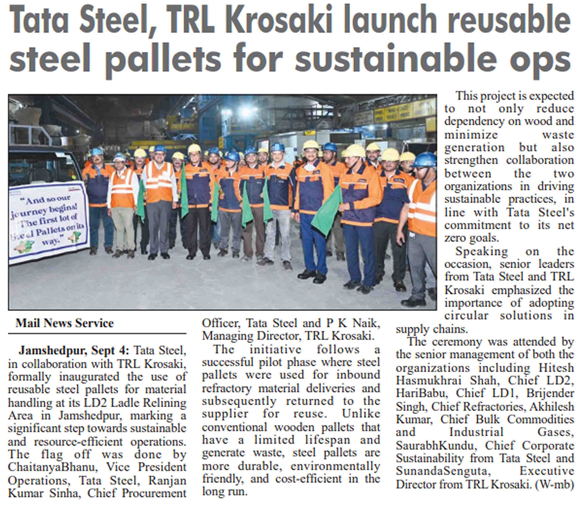 Tata Steel, TRL Krosaki launch reusable steel pallets for sustainable operations