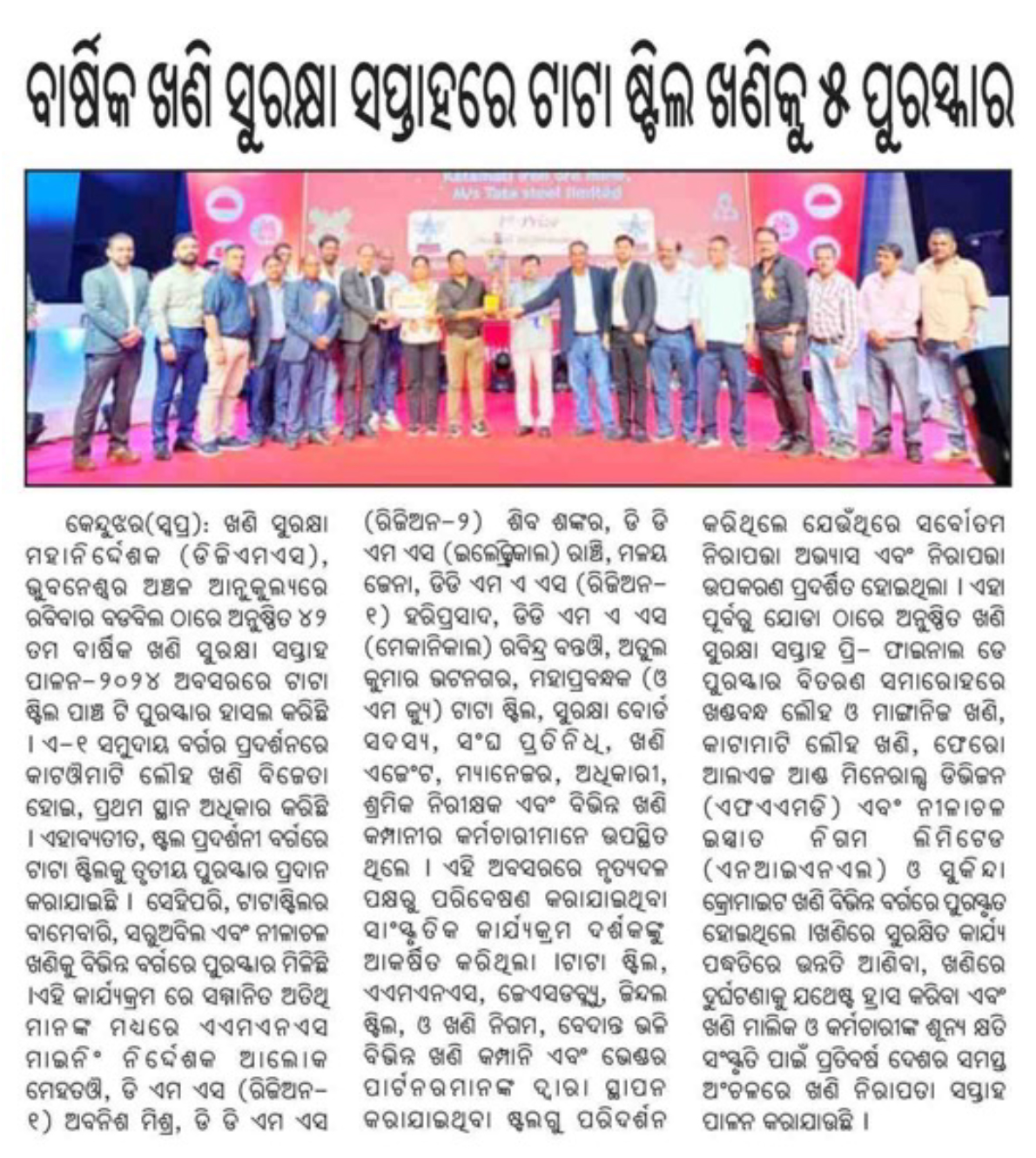 Tata Steel Wins 5 Awards at 42nd Mines Safety Week