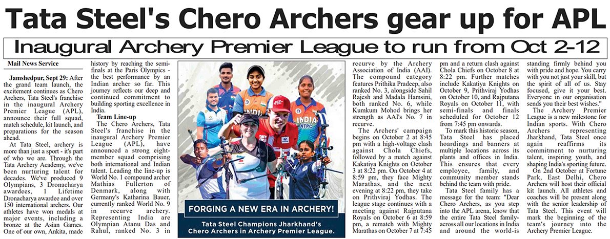 Tata Steel's Chero Archers gear up for Archery Premier League