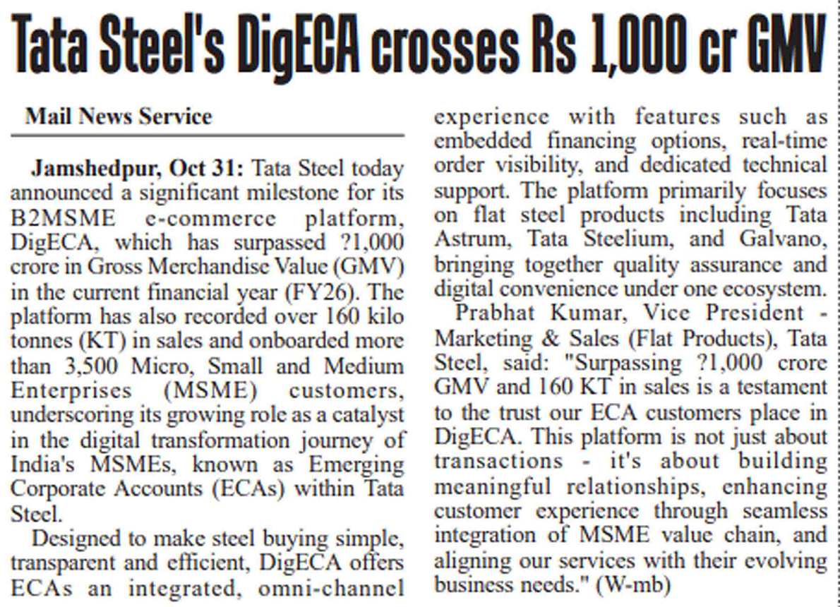Tata Steel's DigECA crossses Rs 1,000 cr GMV