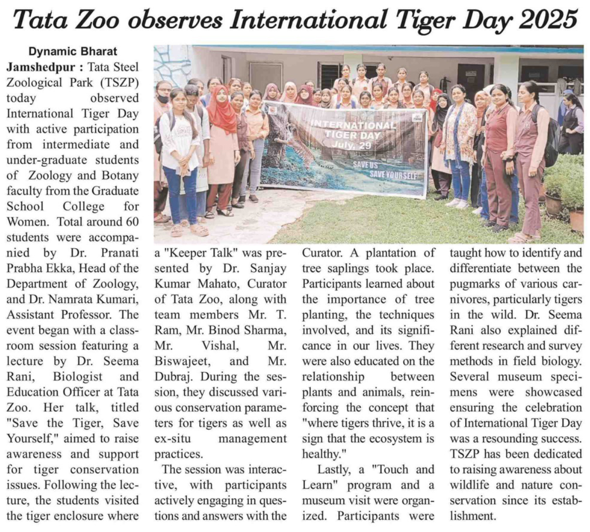 Tata Zoo observes International Tiger Day 2025