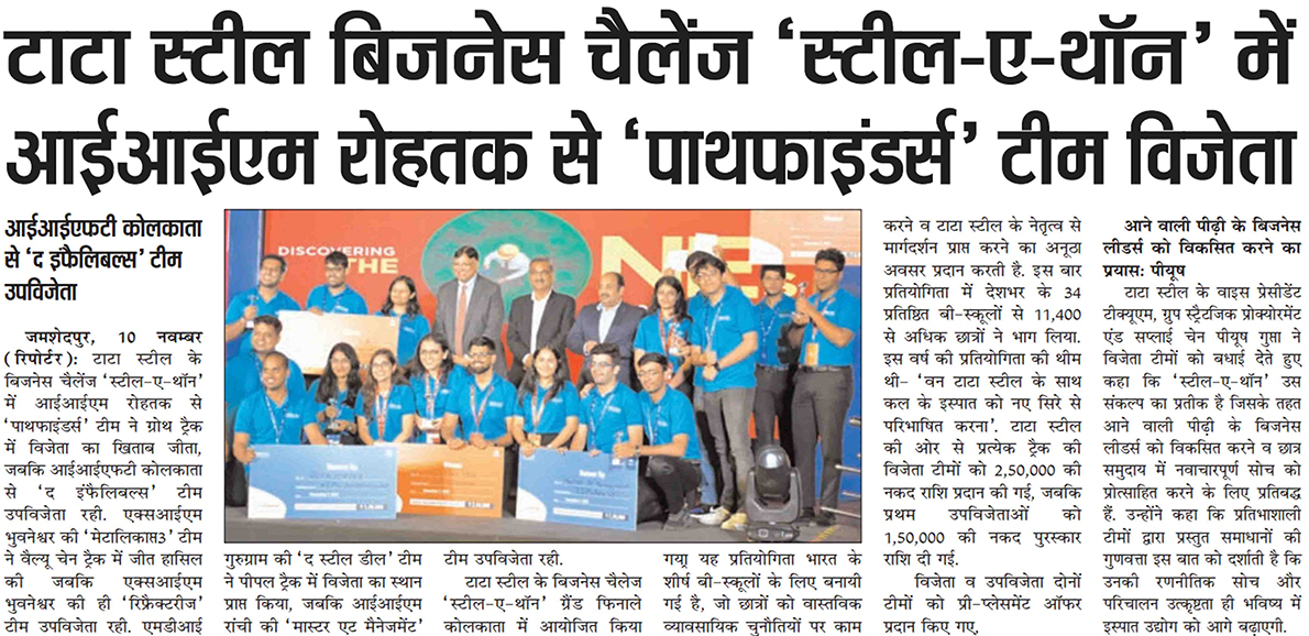 Team 'Pathfinders' from IIM Rohtak wins Tata Steel Business Challenge 'Steel-a-thon'