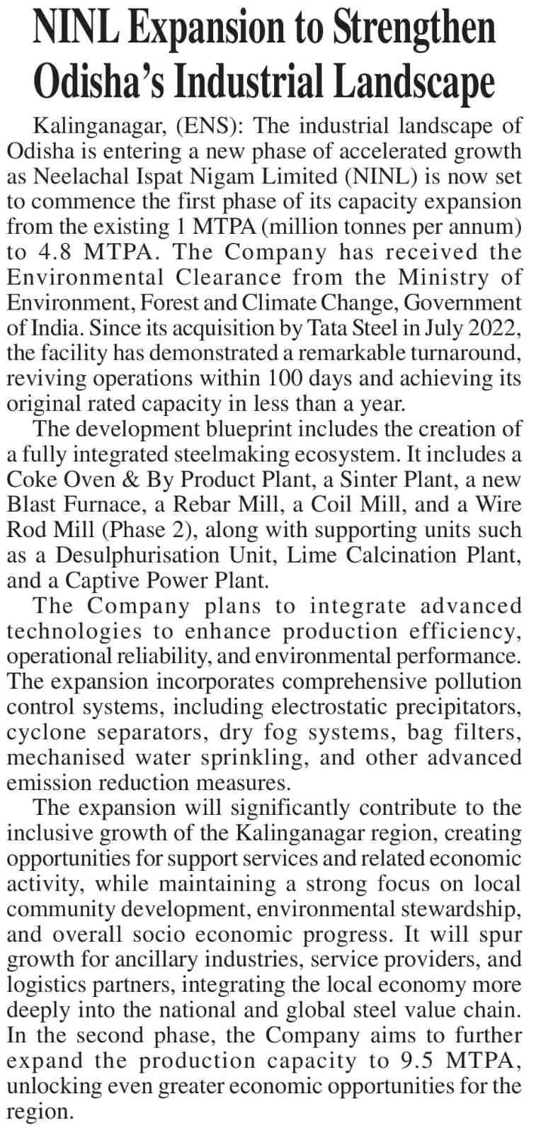 NINL Expansion to Strengthen Odisha's Industrial Landscape
