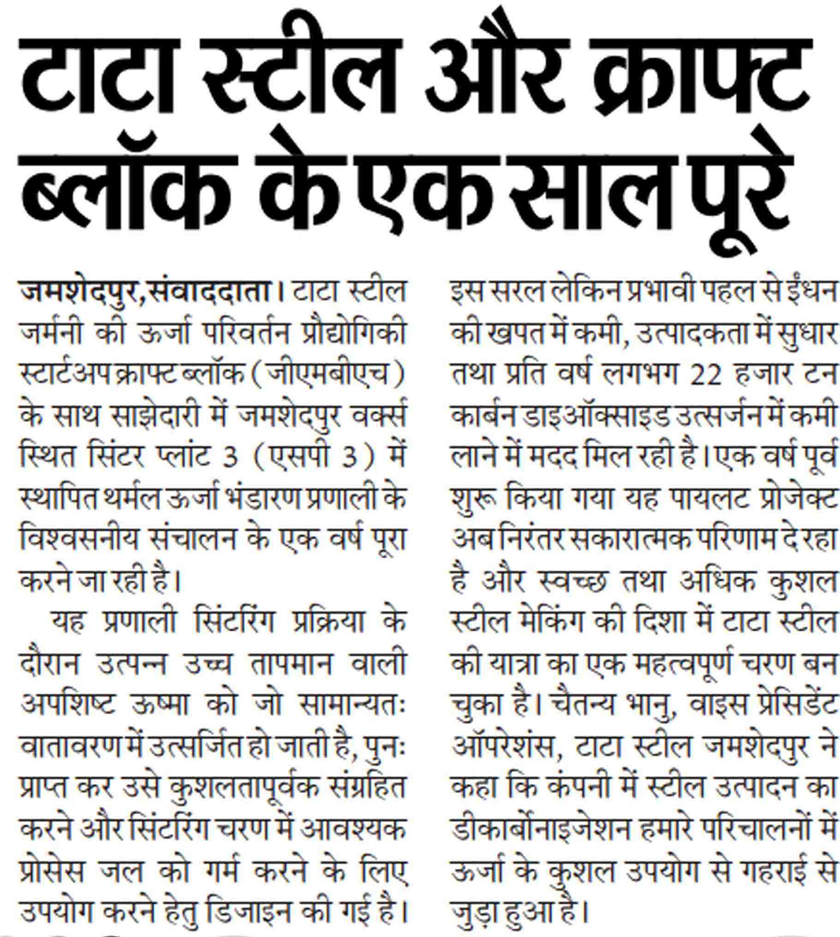 Tata Steel and Kraft Block complete one year