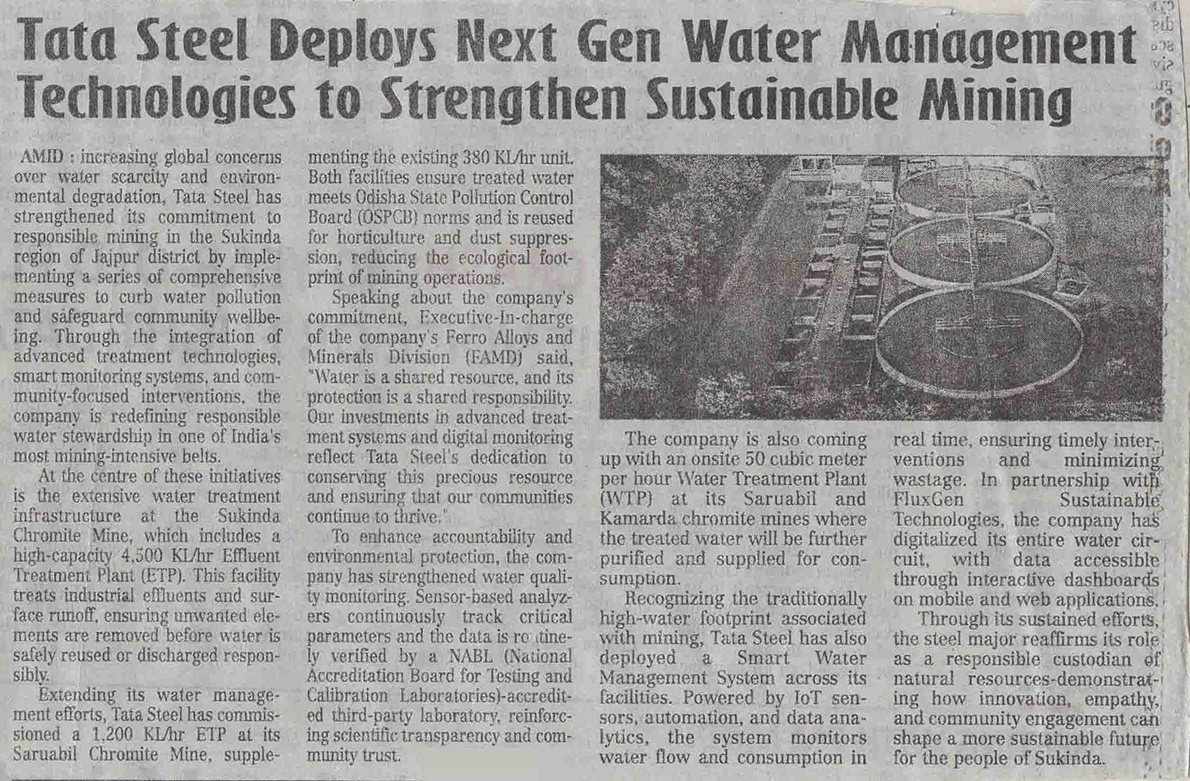 Tata Steel Deploys Next Gen Water Management Technologies to Strengthen Sustainable Mining