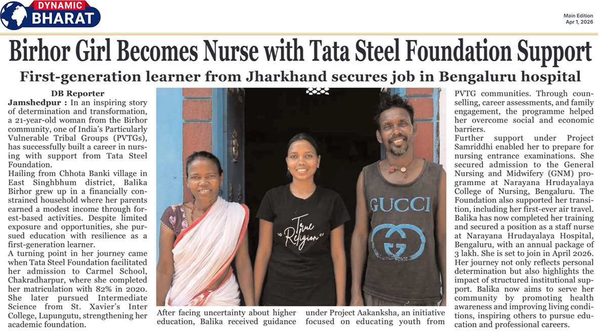 Tata Steel Foundation Enables First-Generation Learner from Birhor Community to Pursue Career in Nursing