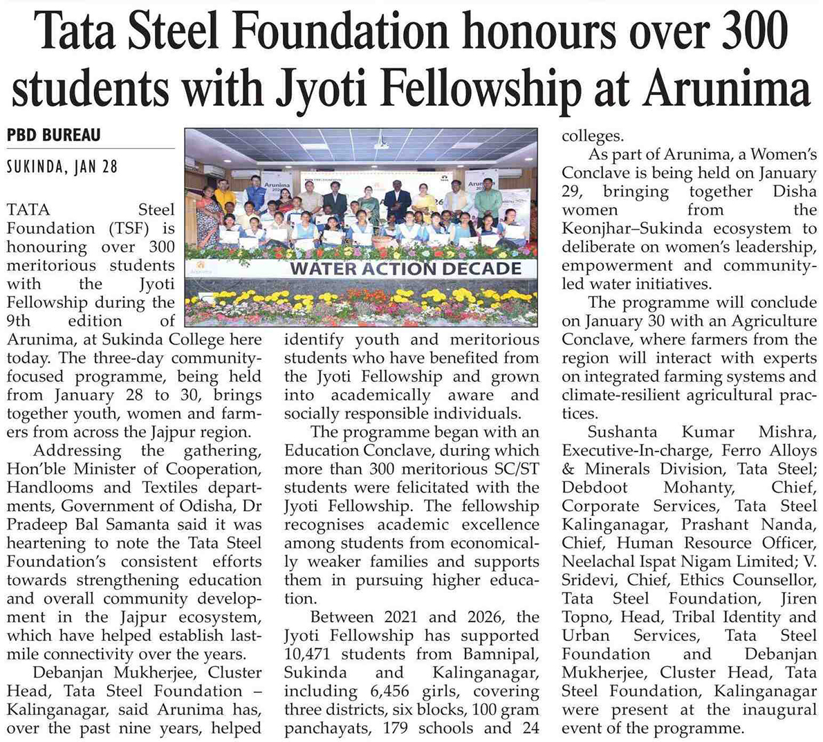 Tata Steel Foundation honours over 300 students with Jyoti Fellowship at Arunima