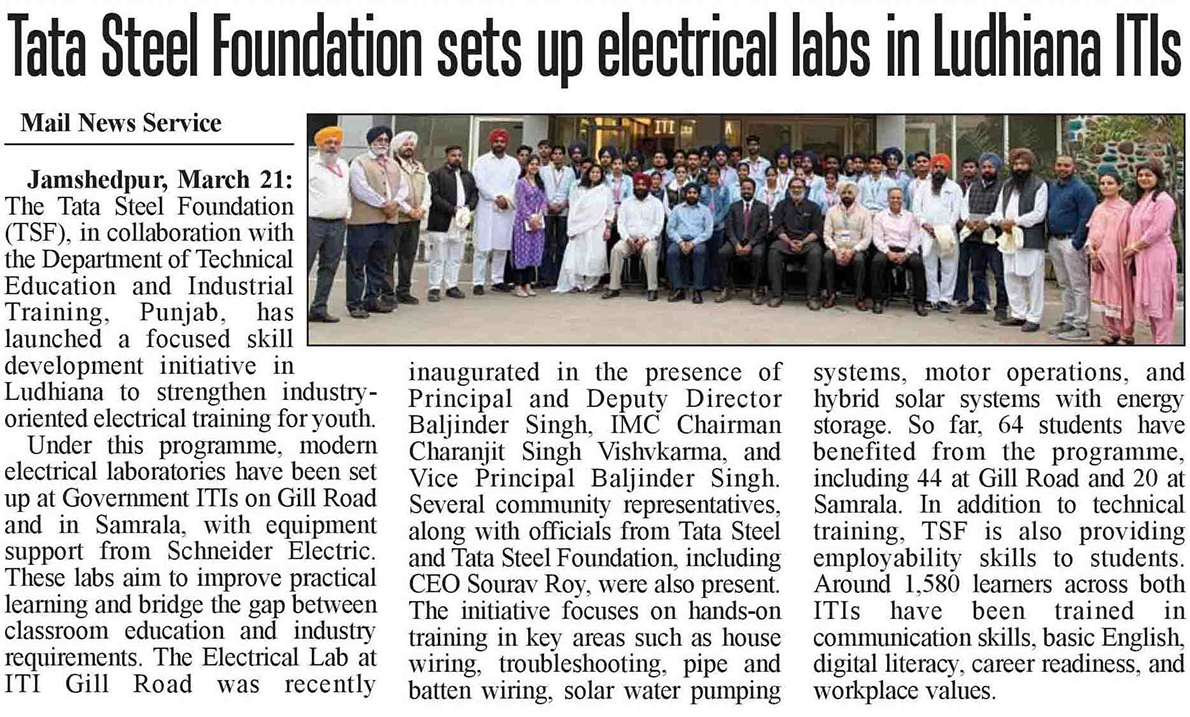 Tata Steel Foundation sets up electrical labs in Ludhiana ITls