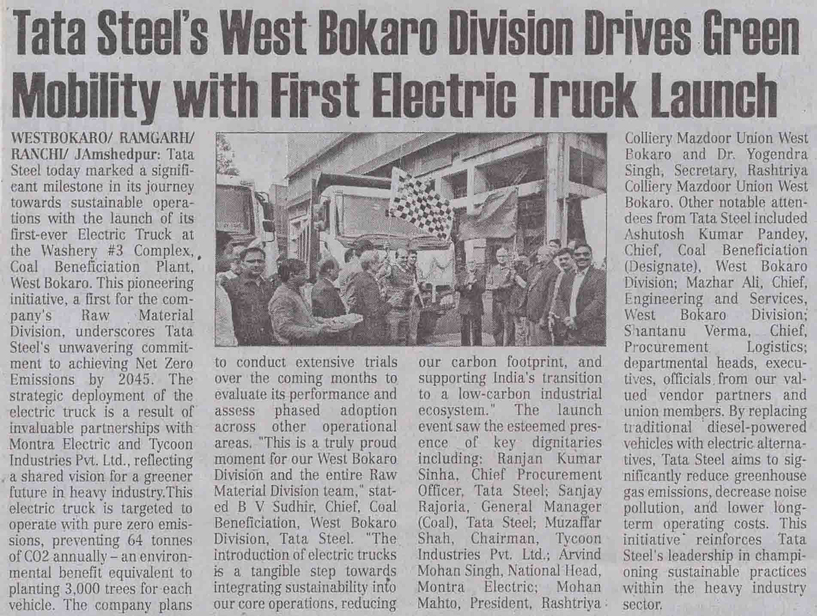 Tata Steel's West Bokaro Division Drives Green Mobility With First Electric Truck Launch
