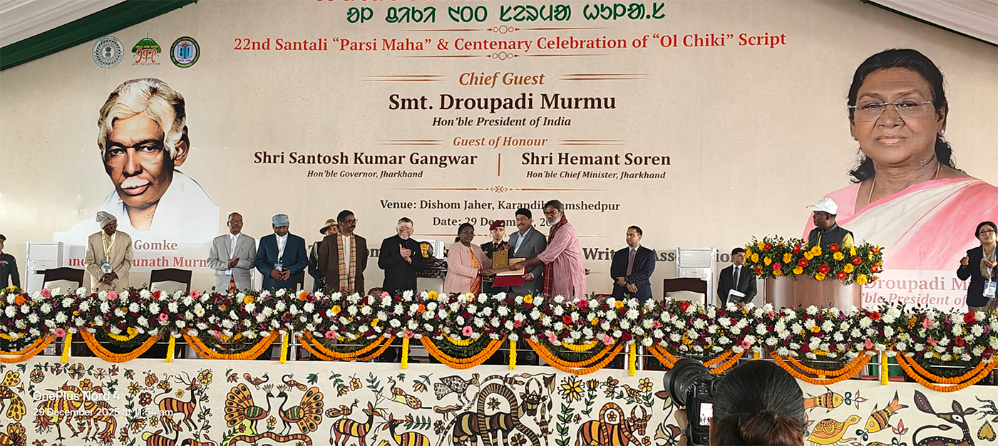 The recognition was conferred during a special function commemorating the 100 years of the Ol Chiki script, organised as part of the 22nd Santali “Parsi Maha” celebrations under the aegis of the All India Santali Writers’ Association (AISWA). Tata Steel Foundation was among a limited set of community-based institutions and individuals selected for their consistent work in strengthening Santali language, literature and cultural identity.