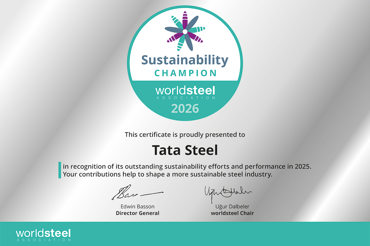 Mumbai, April 15, 2026: Tata Steel has been recognised as a Steel Sustainability Champion 2026 by the World Steel Association (worldsteel), marking the ninth consecutive year that the Company has received this prestigious recognition.