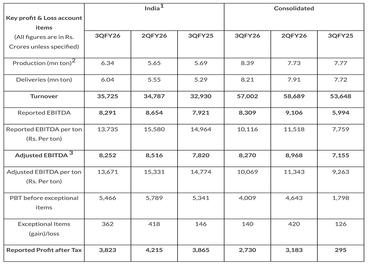 Tata Steel reports Consolidated EBITDA of Rs 8,309 crores for the quarter and Rs 24,894 crores for the nine months ended December 31, 2025