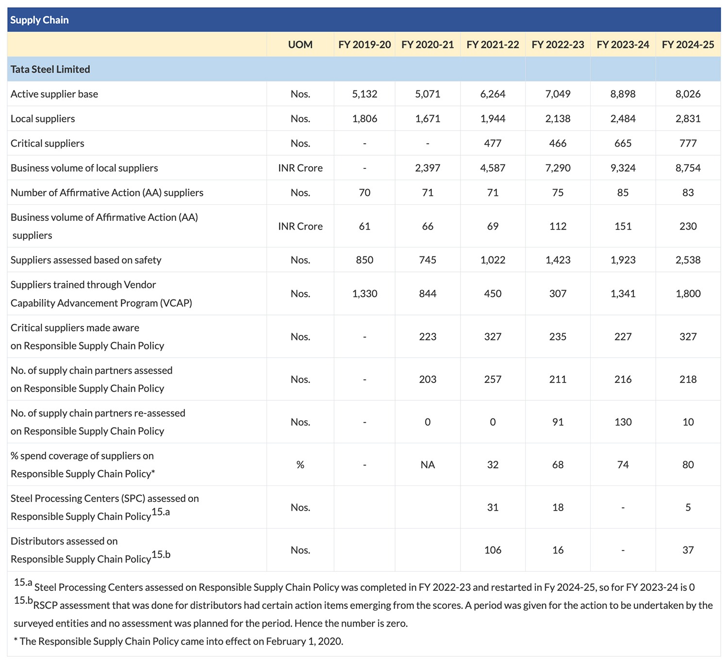 15.a Steel Processing Centers assessed on Responsible Supply Chain Policy was completed in FY 2022-23 and restarted in Fy 2024-25, so for FY 2023-24 is 0 |