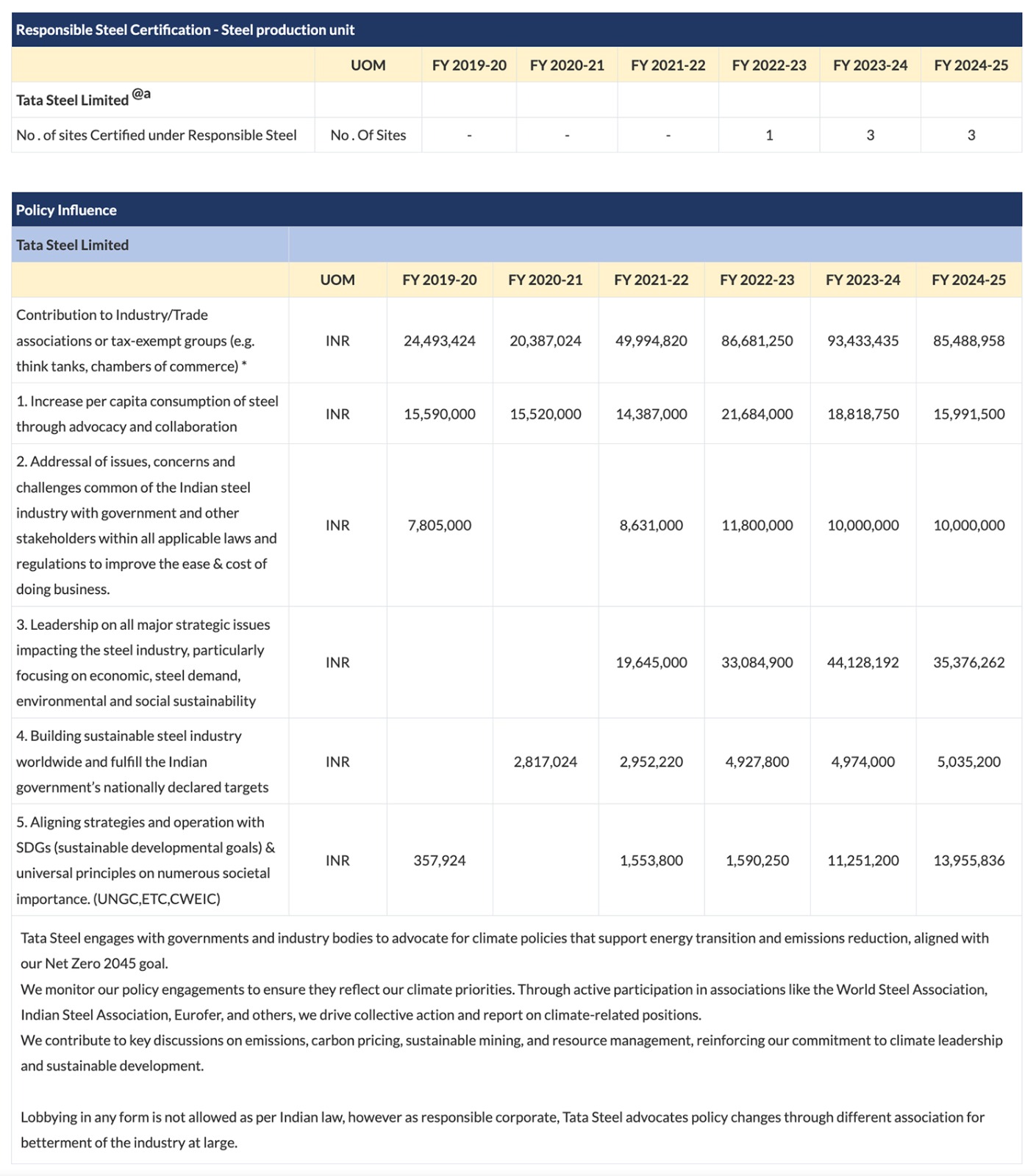 Tata Steel engages with governments and industry bodies to advocate for climate policies that support energy transition and emissions reduction, aligned with our Net Zero 2045 goal. |