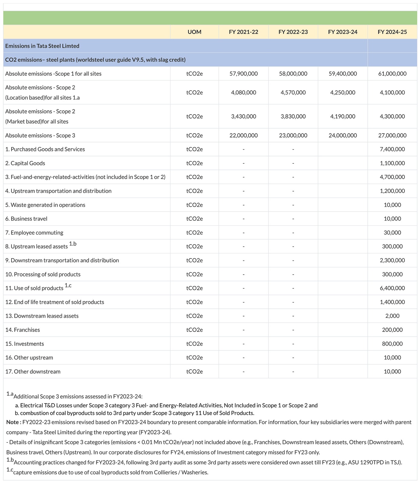 Change in scope of reporting: The scope of Tata Steel Limited is changed in FY2023-24 with the merger of Tata Steel Long Products Limited (TSLP), Tata Metaliks Limited (TML), Tinplate Company of India Limited (TCIL), Tata Steel Mining Limited and S&T Mining Limited with Tata Steel Limited.